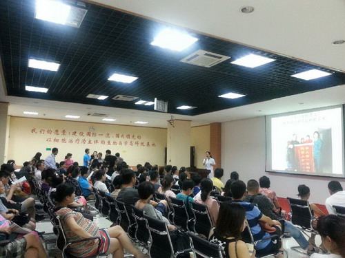 2013年6月30日,100多位準(zhǔn)爸爸、準(zhǔn)媽媽齊聚山東省臍血庫,參加“孕媽媽”公益大課堂,參加活動(dòng)的家庭多數(shù)為通過醫(yī)院進(jìn)行報(bào)名參加。
