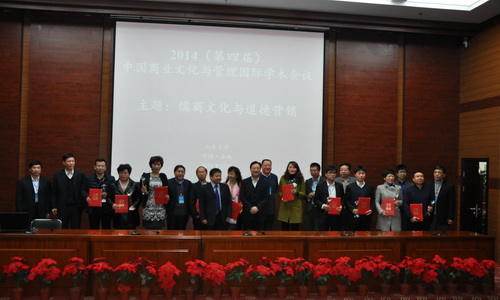 本次學(xué)術(shù)會(huì)議主題為“儒商文化與道德營(yíng)銷”。山東大學(xué)商業(yè)文化與管理研究中心經(jīng)過三年研究,利用科學(xué)方法,深入探討儒商文化特征、測(cè)量維度與評(píng)價(jià)方法,研制了中國(guó)儒商數(shù)據(jù)庫,設(shè)計(jì)出了儒商評(píng)價(jià)指數(shù),并通過采集企業(yè)表現(xiàn)、媒體反映、顧客反映數(shù)據(jù),對(duì)2014中國(guó)儒商企業(yè)進(jìn)行了綜合評(píng)價(jià),并向彭秀玲等十位企業(yè)家頒發(fā)2014中國(guó)儒商風(fēng)范人物證書。