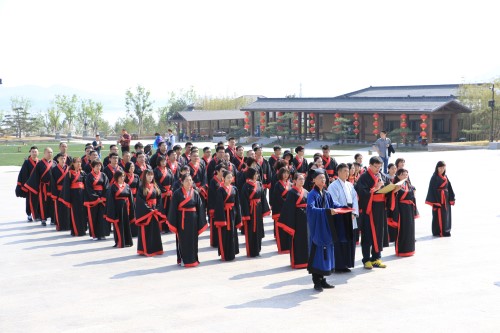 穿上漢服仿佛時(shí)間一下穿越到千年之前,面向72米高的孔子像,大家禮敬先師,感悟明禮生活方式。