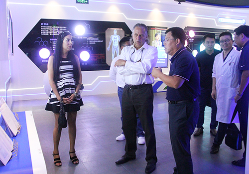 Feuer博士一行首先參觀了山東省臍血庫生命科普館及儲存實驗室,詳細了解了生物集團的業(yè)務(wù)開展,臨床技術(shù)應(yīng)用,未來發(fā)展前景等,并就臍血干細胞的應(yīng)用及其他相關(guān)領(lǐng)域的國際科技合作等問題做了交流探討。