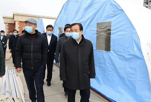 孫立成一行察看了正在搭建的氣膜方艙實(shí)驗(yàn)室情況,聽取項(xiàng)目負(fù)責(zé)人的工作介紹,詳細(xì)詢問了解核酸檢測(cè)實(shí)驗(yàn)室建設(shè)、設(shè)備配置、人員配備等情況。