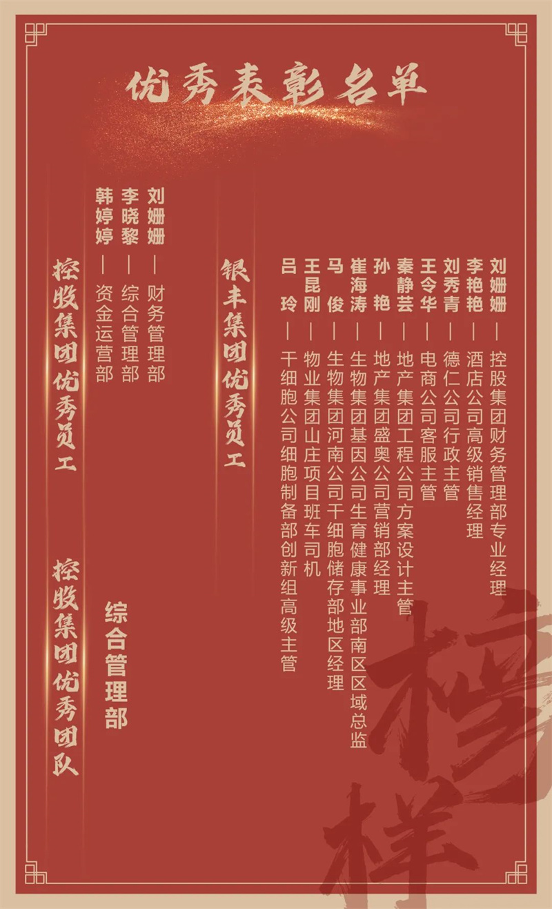 杰出的業(yè)績(jī)?cè)从跁r(shí)間的累積,傲人的成就來(lái)自于不懈的努力。2022年,銀豐集團(tuán)涌現(xiàn)出一批優(yōu)秀員工和集體,他們用實(shí)際行動(dòng)踐行著“誠(chéng)信做人、認(rèn)真做事、張弛有度、開(kāi)拓進(jìn)取”的銀豐精神,他們為所有銀豐人注入榜樣的力量!